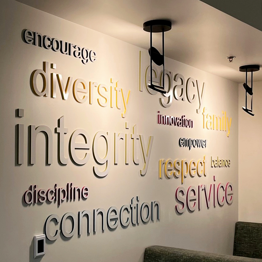 Vibrant graphics, dimensional lettering, and custom finishes that elevate any space
